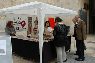 La parada, mentrestant, fou punt de trobada de les persones que col·laboren amb l'entitat, indret també de conversa i de nous contactes. Es van repartir retallables amb els personatges de la llegenda de Sant Jordi, editats l'any passat. I també es van vendre llibres, és clar.